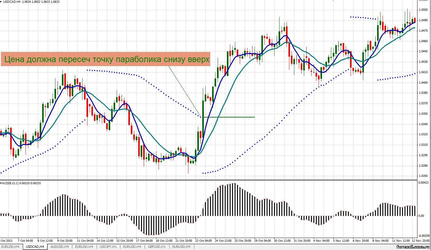 1 Цена должна пересечь точку параболика снизу вверх.
