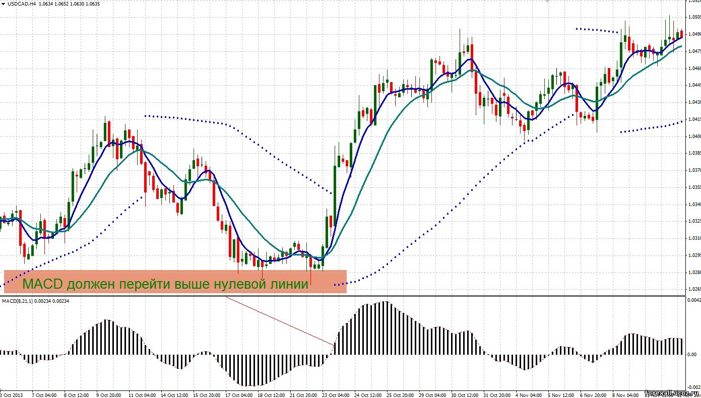 3 Индикатор MACD должен перейти с отрицательной зоны в положительную.