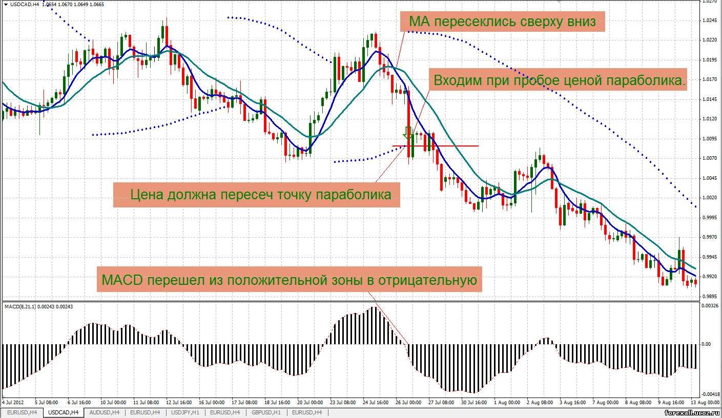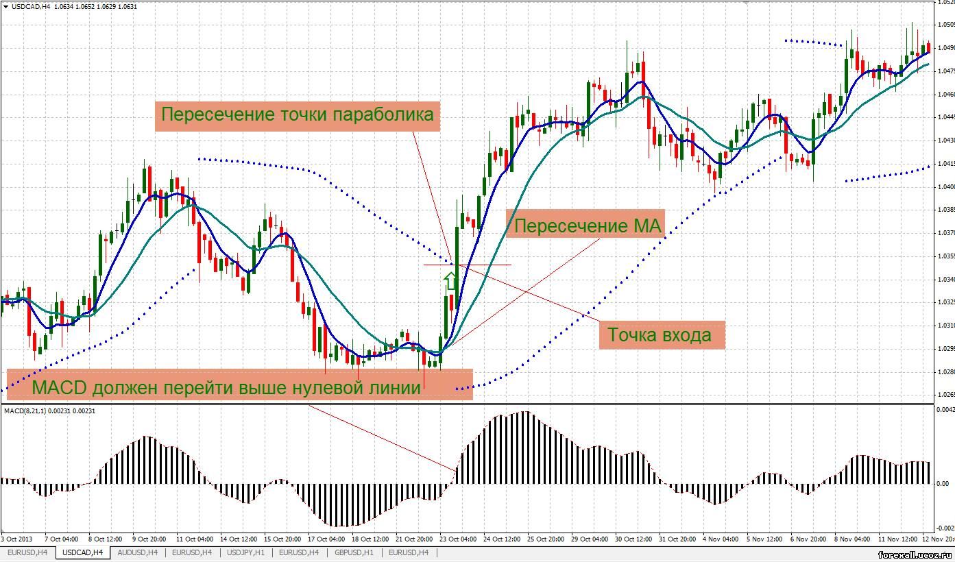 Данная торговая система подойдет для тех кто не может много времени уделять рынку Forex, либо постоянно находится за терминалом, но т.к. мы все желаем зарабатывать деньги, то любые действия на рынке Форекс должны подтверждаться сигналами наших торговых систем, а не интуицией и азартом. Данная торговая система используется только на периоде Н4 и только на валютных парах USD/CAD И EUR/USD.